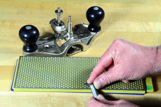 - Apply oil-based compound to flat surface; using precise angle control, sharpen tool against the compound to achieve desired results.