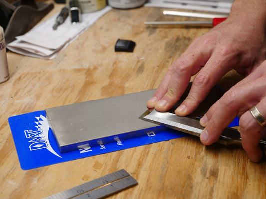 Guaranteed not to hollow or groove, DMT's precisely engineered Dia-Sharp® Bench Stone with continuous diamond surface assures consistent, even sharpening every time. The 8-in. length is ideal for a variety of knives and tools, providing cutting edge performance for edge repair and honing. Also a great alternative to power grinding, you won't have to worry about ruining the temper of your tools with Dia-Sharp® Bench Stones. Perfect for flattening plane soles, irons and chisel backs as well, there is little the Dia-Sharp® Bench Stone can't handle. This particular model comes equipped with coarse diamond (45 micron / 325 mesh) to quickly restore a neglected edge. Also includes non-skid rubber feet with the diamond grit clearly marked on side of stone. Thanks to its micronized monocrystalline diamond surface as well, you can sharpen edges faster and easier than conventional stones can. No messy oils are needed either, allowing you to sharpen dry or with water. Complete with a durable construction that will provide years of consistent performance and reliable service, professionals rely on the superior quality and versatility of DMT® products. Made in the USA.